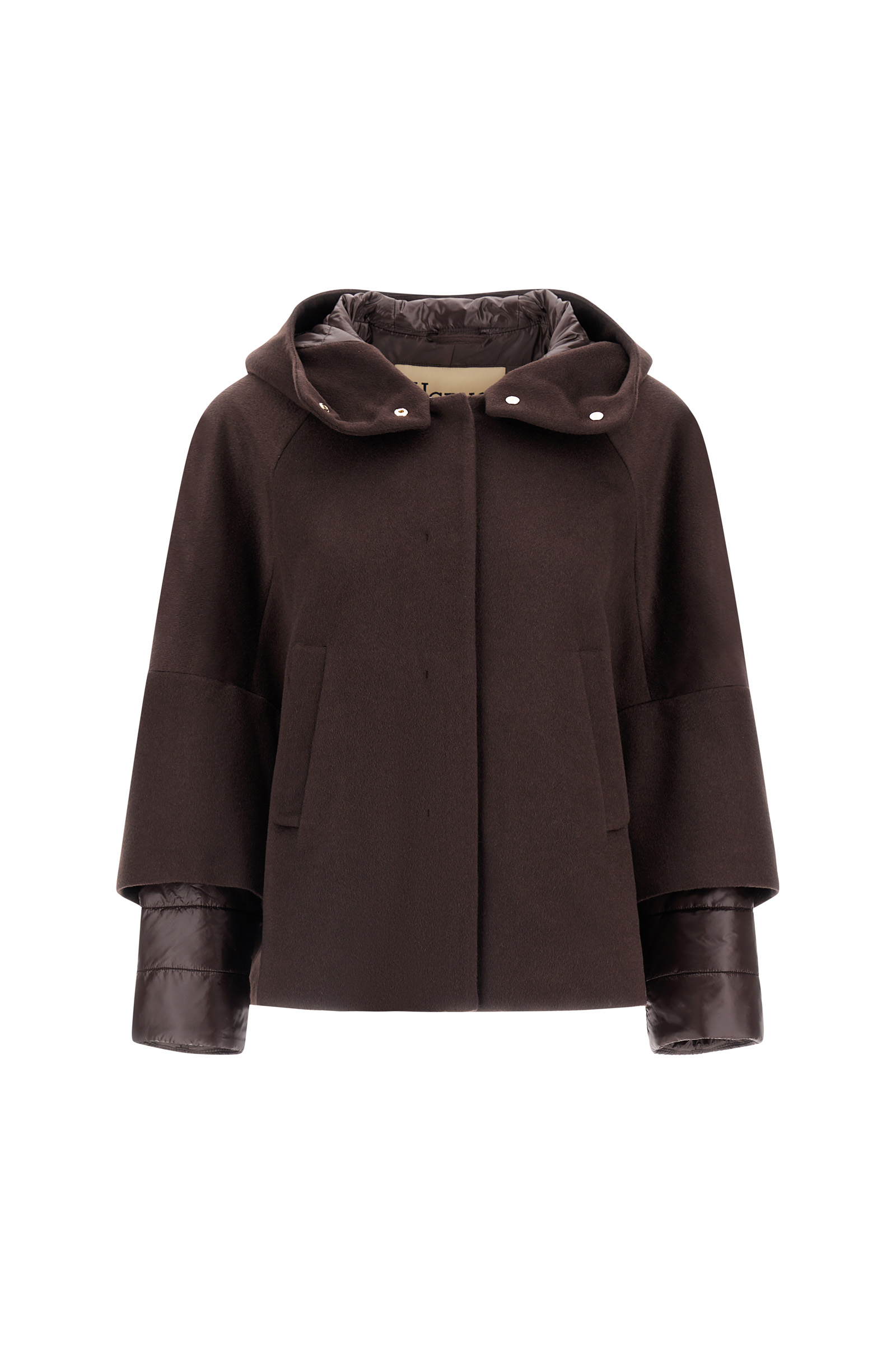 Tasche laterali e chiusura con bottoni a pressione completano il capo, mentre il logo Herno in metallo sul retro aggiunge un dettaglio distintivo.