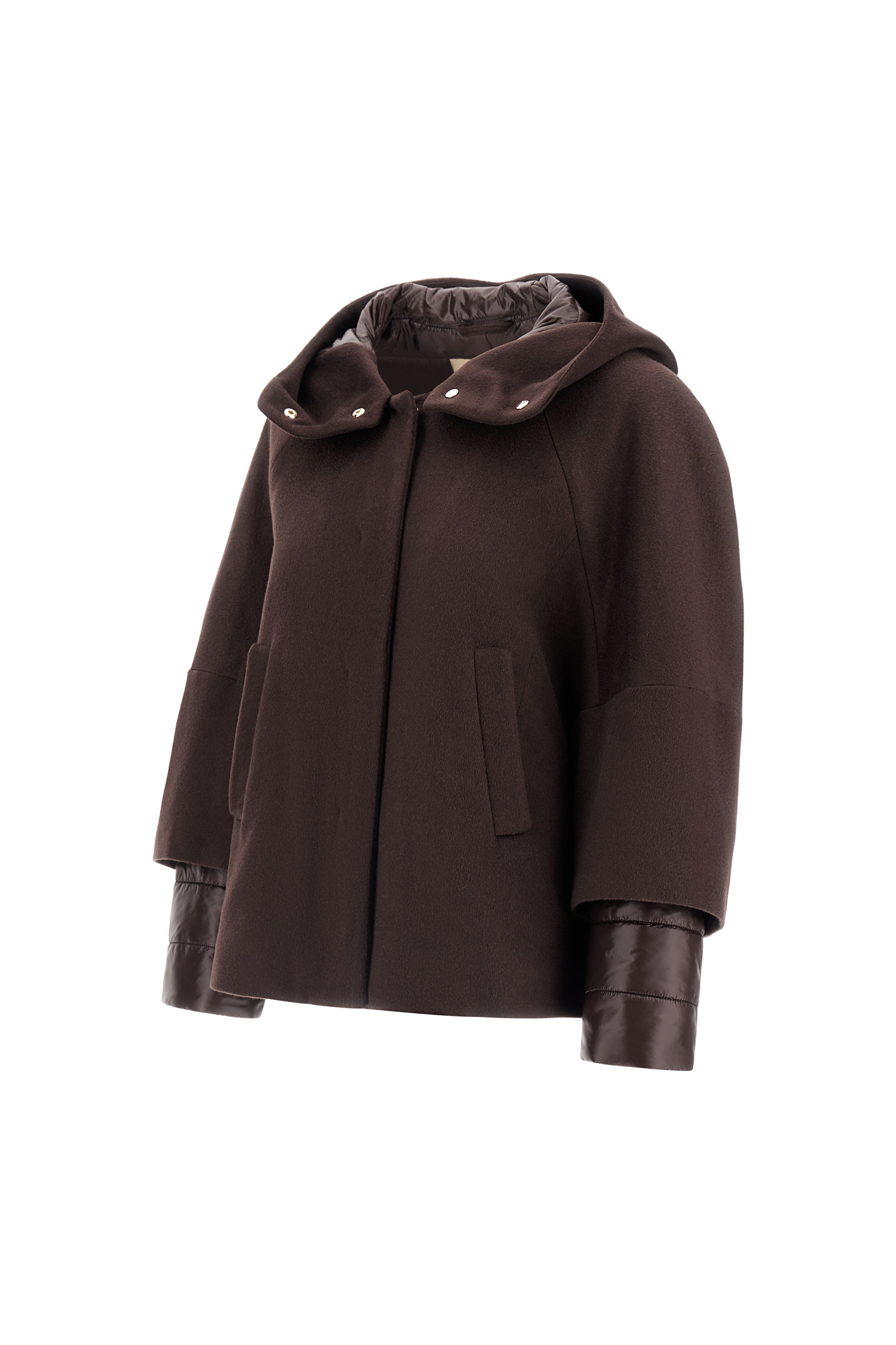 Cappa in puro cashmere con finitura zibellinata, dal tatto ricco e morbido e con un aspetto lucente.